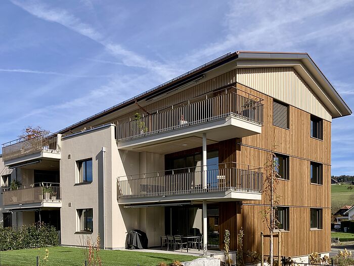 Das Mehrfamilienhaus Amrein ist fertiggestellt. Wir freuen uns mit den Familien Amrein und gratulieren ihnen zu dieser Perle im Herzen vom Dorf Neudorf. Nicht nur das historisch fundiert hergeleitete Holzkleid überzeugt, sondern auch das nachhaltige Energiekonzept im MINERGIE-Standard ist richtungsweisend.