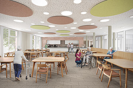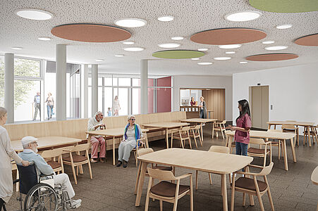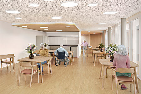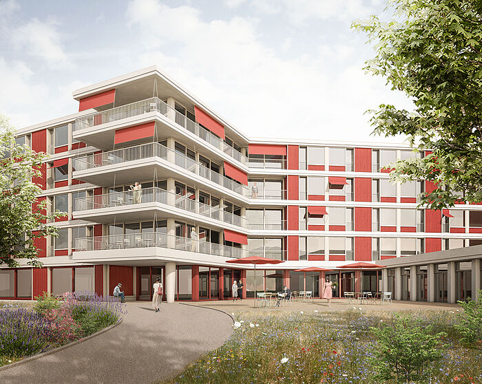 Die Arbeiten für das neue Pflegeheim mit 56 hellen Zimmern, modernen Aufenthaltsräumen und einer einladenden Cafeteria schreiten zügig voran. Zur Zeit, Mitte Mai 2024, werden bereits die Wände des 2. Obergeschosses hochgezogen. Im Oktober 2025 können dann die Bewohnenden einziehen.