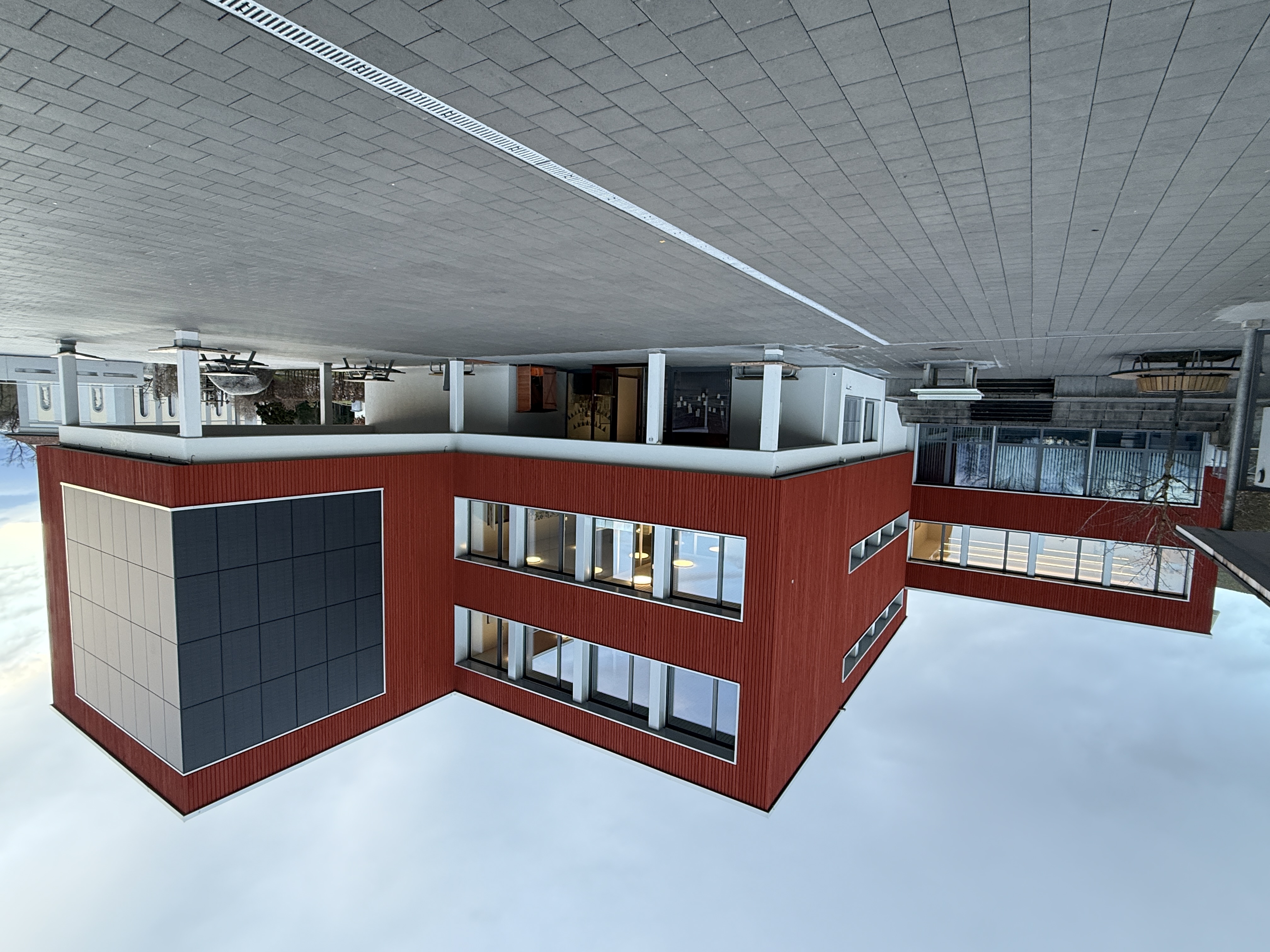 Die Gemeindeverwaltung befindet sich im Erdgeschoss. Alle Arbeitsplätze sind auf dieser Etage. Somit können optimale Bedingungen für effiziente Arbeitsabläufe geschaffen werden. Im Untergeschoss ist ein Mehrzweckraum, welcher für Kommissionen ausserhalb der Bürozeiten zugänglich gemacht wird. Im Weiteren befinden sich Aufenthaltsraum, Sozialräume, Technikräume, wie auch das Archiv im Untergeschoss. Durch die geschickte Raumaufteilung ist das Bauvolumen optimal ausgenutzt.